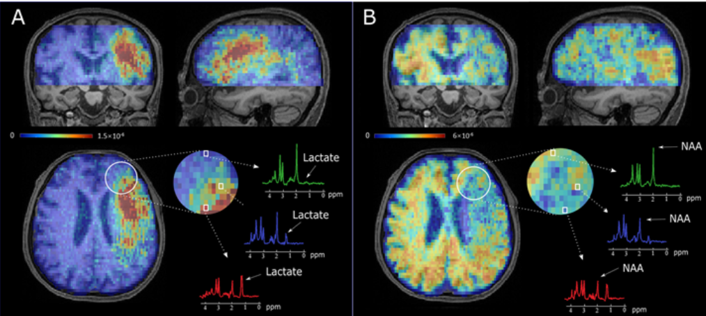 近日,williamhill威廉希尔官网李瑶课题组在急性脑卒中患者全脑高分辨率快速代谢成像方面取得了突破,首次实现8分钟内3毫米空间分辨率脑卒中患者全脑神经细胞代谢成像,获得NAA及乳酸等重要神经代谢物分布图谱。该研究以“Fast high-resolution metabolic imaging of acute stroke with 3D magnetic resonance spectroscopy”为题发表在脑科学研究领域权威期刊《Brain》上(DOI:10.1093/brain/awaa264),并被选为11月刊封面论文,且获得Brain Tweet的官方推送报道。